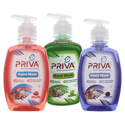 Priva Hand Wash is generally supplied in pump packs and refill packs for home and institutional use (availability may vary by requirement).