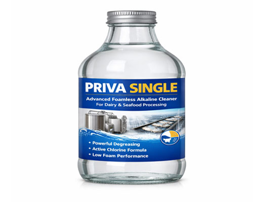 PRIVA SINGLE is a high-performance foamless alkaline cleaner developed for efficient and reliable sanitation in dairy and seafood processing environments. Formulated with advanced low-foam surfactants and active chlorine, it ensures deep cleaning, superior degreasing, and hygienic processing conditions. Ideal for daily use, it helps maintain equipment cleanliness while supporting operational efficiency in critical food processing systems.